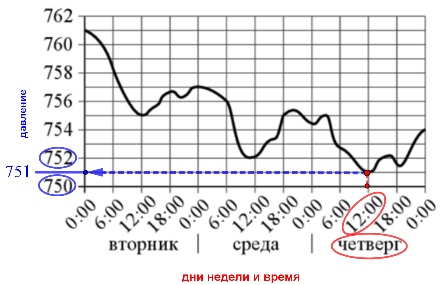 Таким образом, в четверг в \(\displaystyle 12\) часов дня давление равно \(\displaystyle {751}\) мм рт. ст.